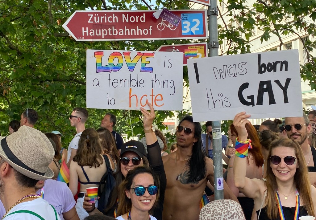 Auf der Pride in Zürich stand eine junge Frau mit einem wundervollen Schild „Love is a terrible thing to hate“. Eine super kraftvolle Aussage.